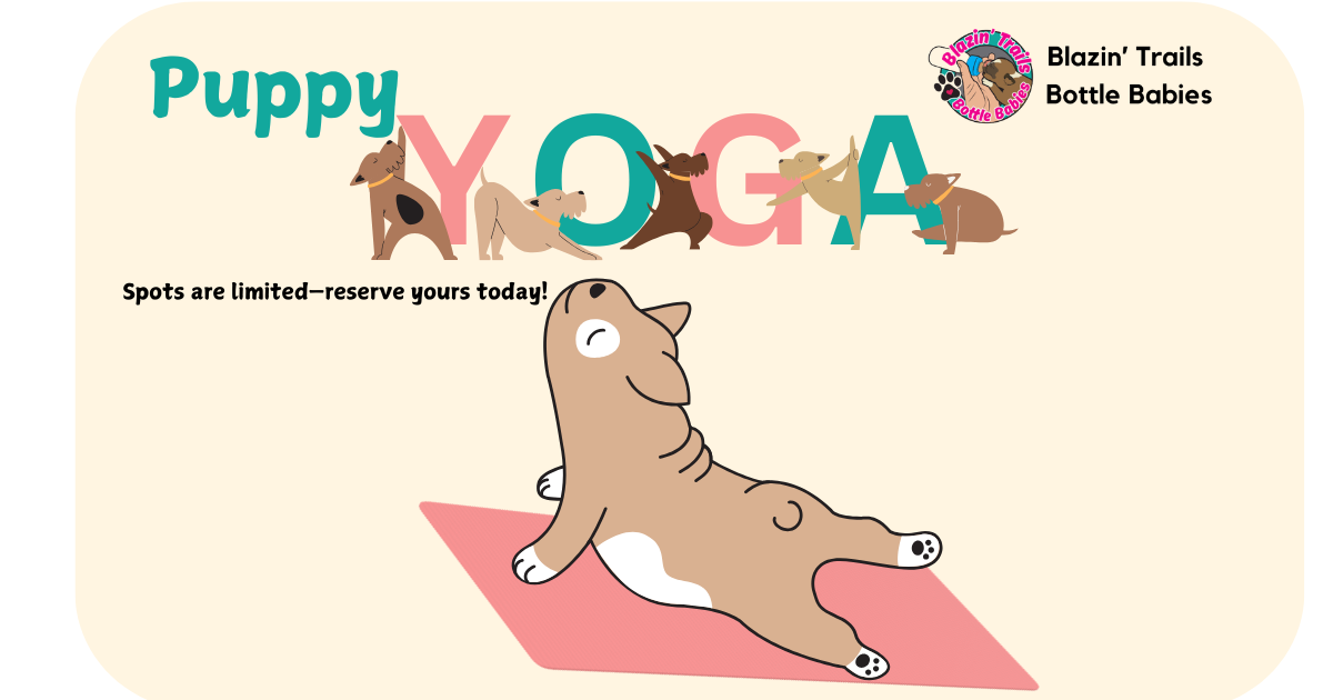 Stretch, smile, and snuggle—welcome to Puppy Yoga with Blazin’ Trails Bottle Babies! This feel-good flow pairs gentle yoga with irresistible ... Read More